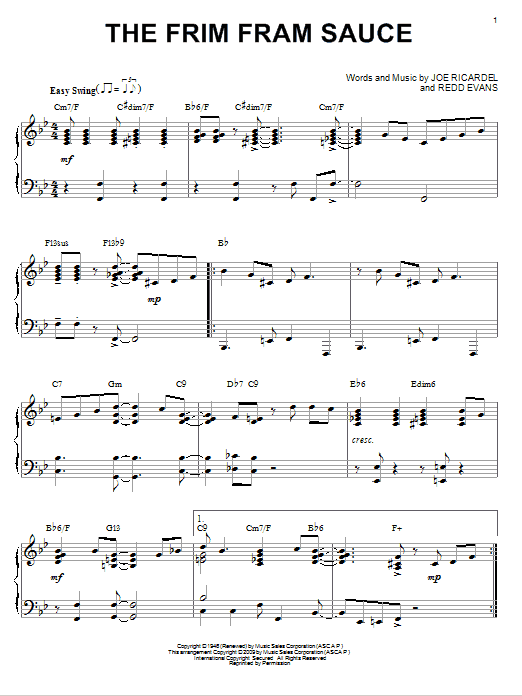 Download or print Nat King Cole The Frim Fram Sauce (arr. Brent Edstrom) sheet music, chords and digital score arranged for Piano Solo. This Jazz score includes 4 page(s).