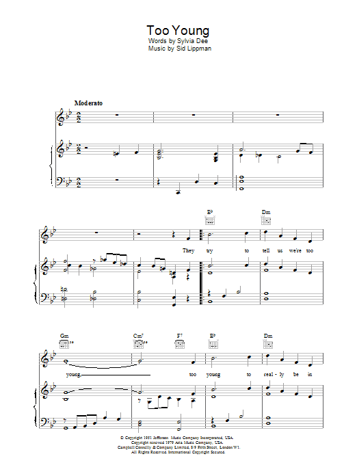 Download or print Nat King Cole Too Young sheet music, chords and digital score arranged for Piano, Vocal & Guitar Chords. This Pop score includes 3 page(s).