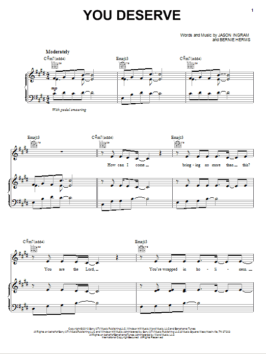 Download or print Natalie Grant You Deserve sheet music, chords and digital score arranged for Piano, Vocal & Guitar Chords (Right-Hand Melody). This Christian score includes 8 page(s).