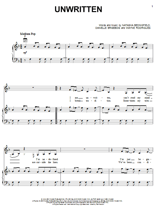 Download or print Natasha Bedingfield Unwritten sheet music, chords and digital score arranged for Easy Guitar Tab. This Film/TV score includes 4 page(s).