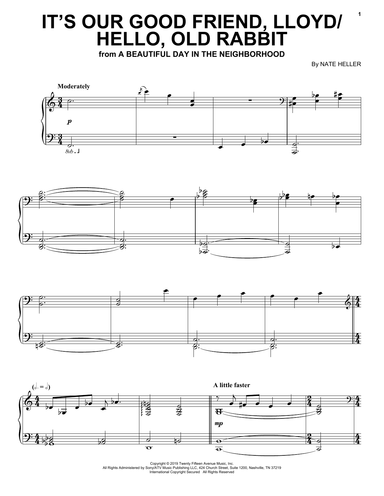 Download or print Nate Heller It's Our Good Friend, Lloyd/Hello, Old Rabbit (from A Beautiful Day in the Neighborhood) sheet music, chords and digital score arranged for Piano Solo. This Children score includes 2 page(s).
