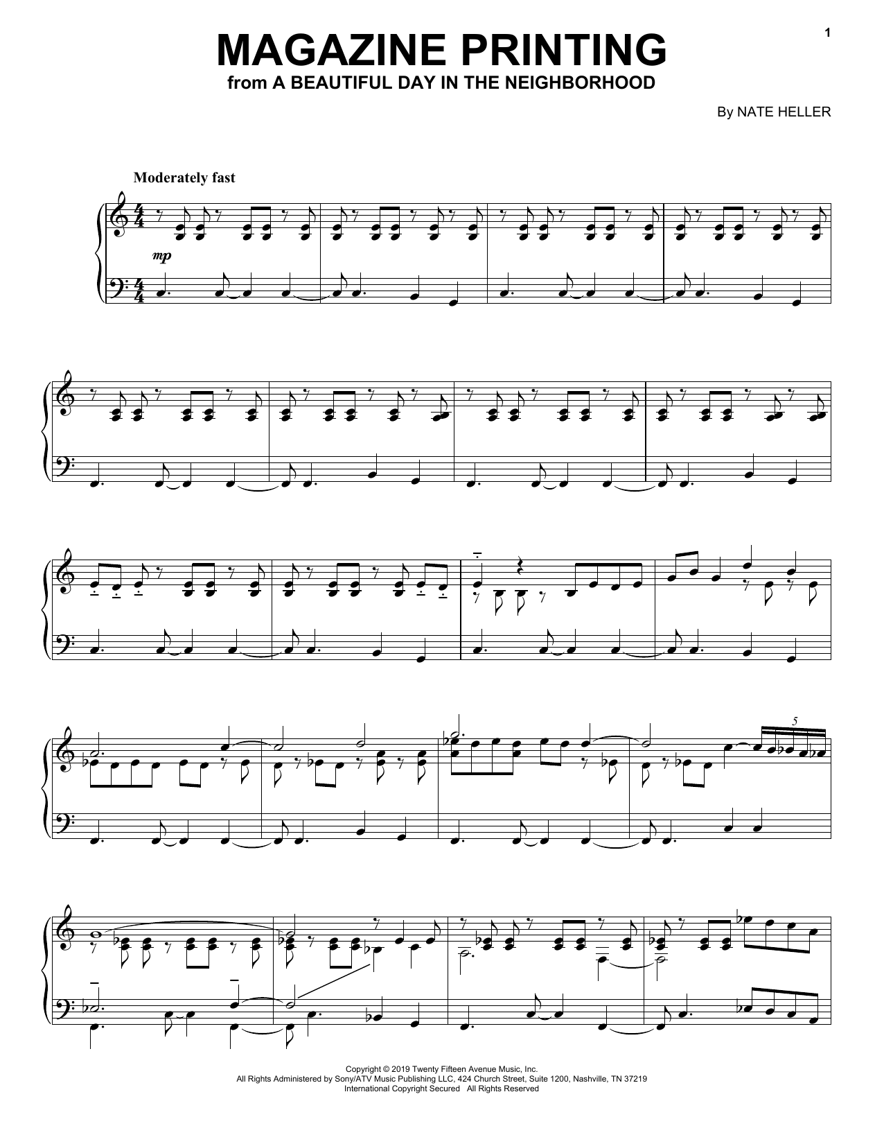 Download or print Nate Heller Magazine Printing (from A Beautiful Day in the Neighborhood) sheet music, chords and digital score arranged for Piano Solo. This Children score includes 2 page(s).