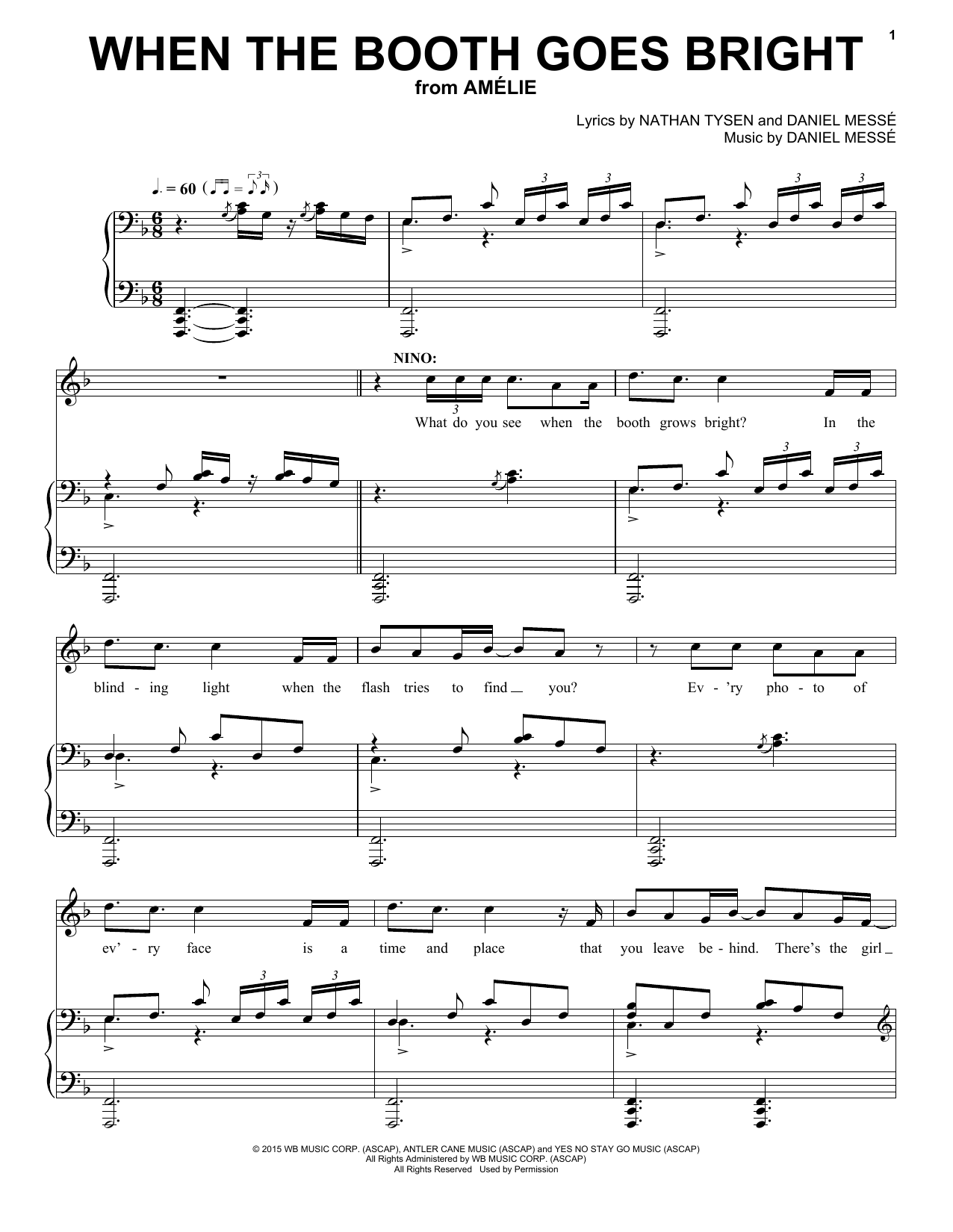 Download or print Nathan Tysen & Daniel Messé When The Booth Goes Bright (from Amélie The Musical) sheet music, chords and digital score arranged for Piano & Vocal. This Musical/Show score includes 7 page(s).