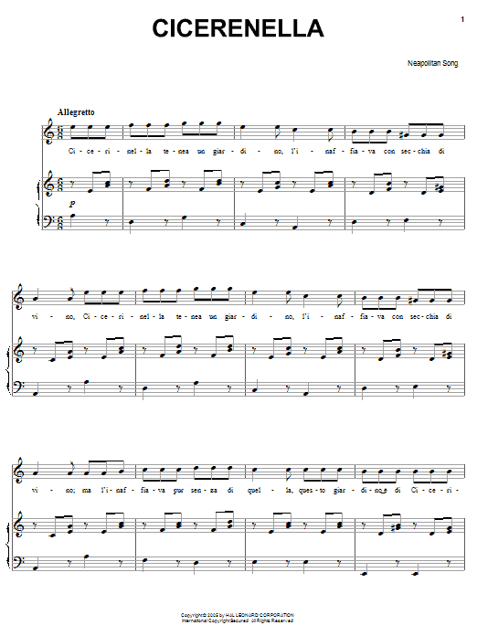 Download or print Neapolitan Song Cicerenella sheet music, chords and digital score arranged for Solo Guitar. This Classical score includes 3 page(s).