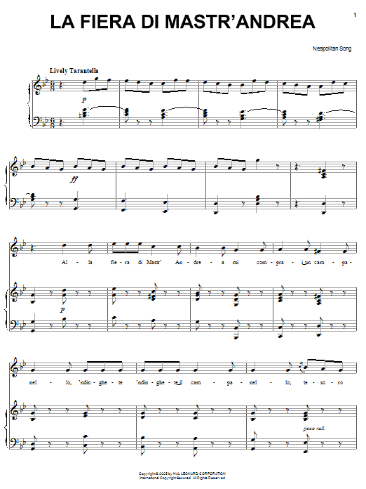 Download or print Neapolitan Song La fiera di Mastr'Andrea sheet music, chords and digital score arranged for Piano, Vocal & Guitar Chords (Right-Hand Melody). This Classical score includes 6 page(s).
