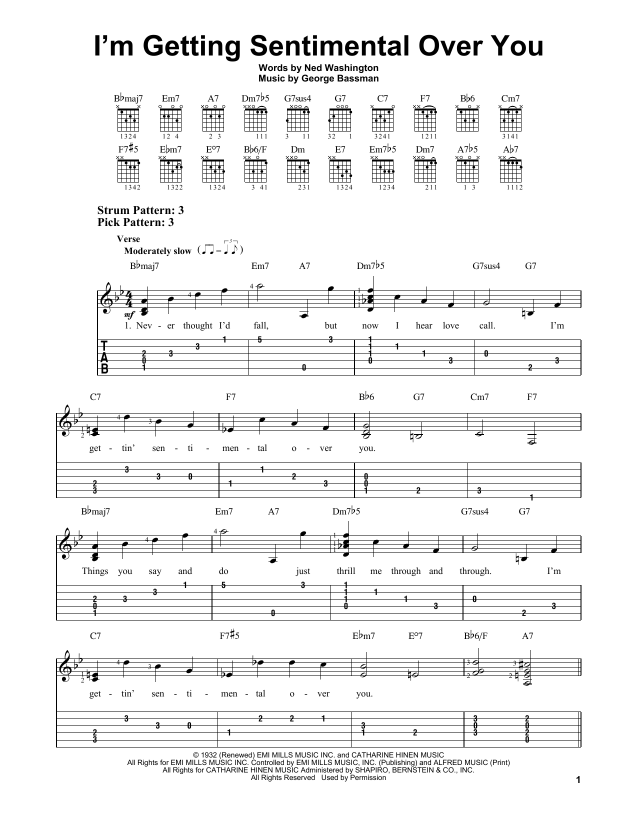 Download or print Ned Washington I'm Getting Sentimental Over You sheet music, chords and digital score arranged for Easy Guitar Tab. This Jazz score includes 2 page(s).