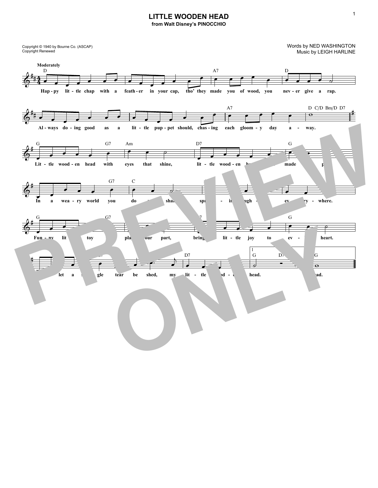 Download or print Ned Washington Little Wooden Head sheet music, chords and digital score arranged for Lead Sheet / Fake Book. This Children score includes 1 page(s).