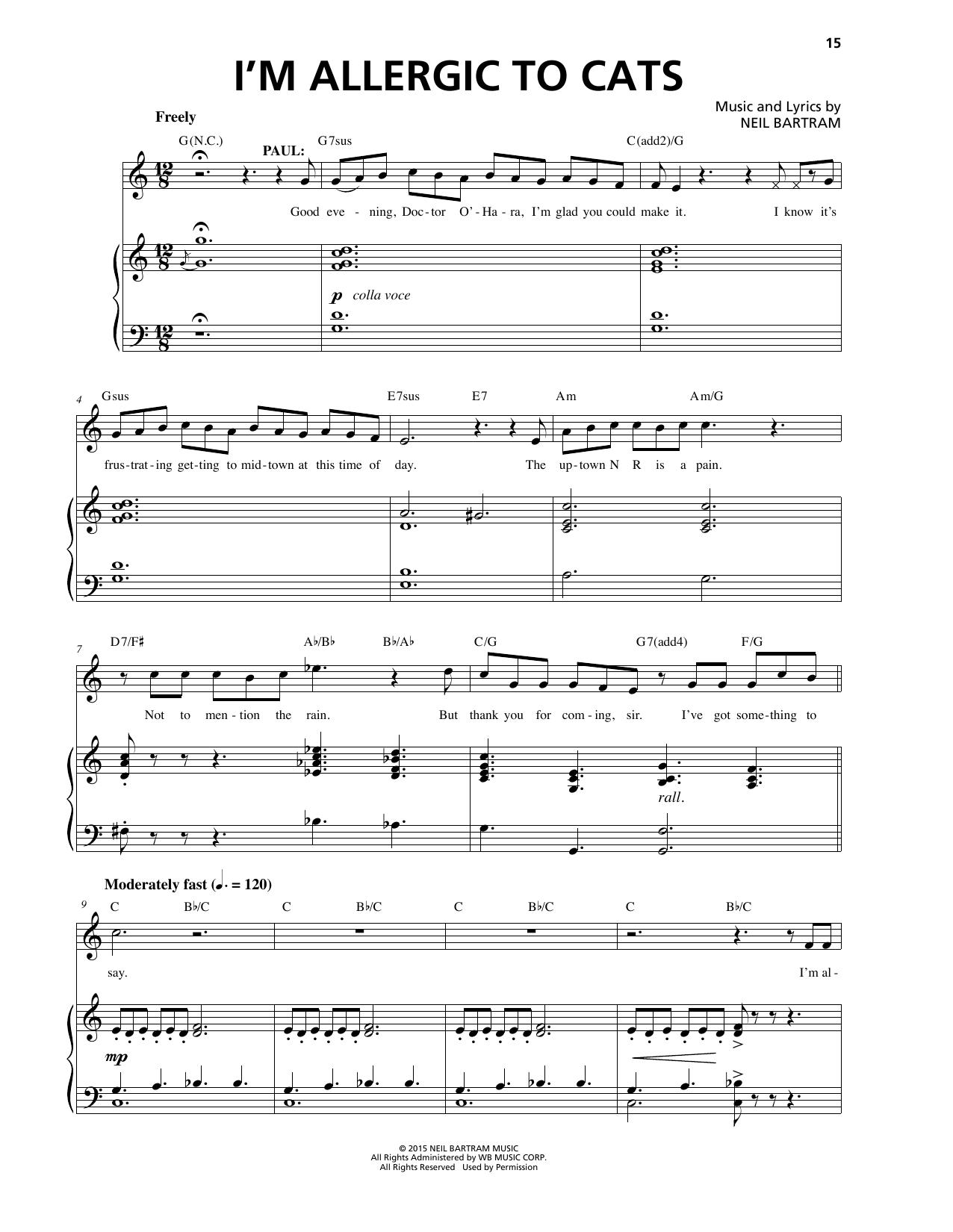 Download or print Neil Bartram I'm Allergic To Cats (from The Theory Of Relativity) sheet music, chords and digital score arranged for Piano & Vocal. This Musical/Show score includes 9 page(s).