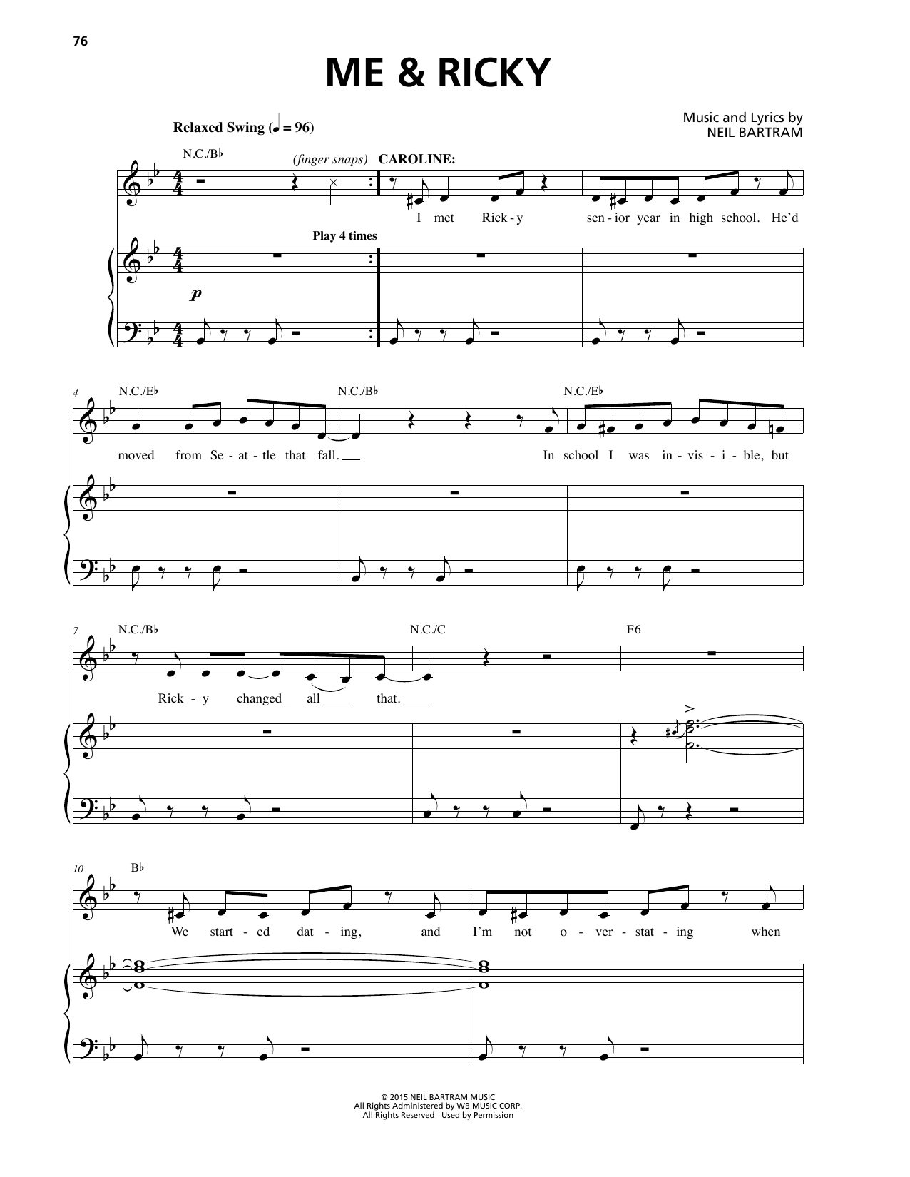 Download or print Neil Bartram Me & Ricky (from The Theory Of Relativity) sheet music, chords and digital score arranged for Piano & Vocal. This Musical/Show score includes 14 page(s).