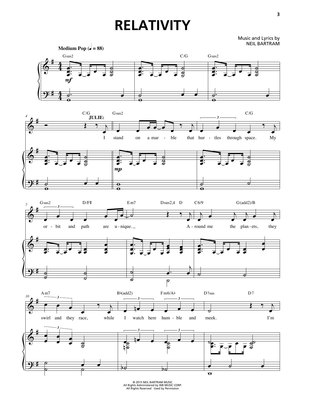 Download or print Neil Bartram Relativity (from The Theory Of Relativity) sheet music, chords and digital score arranged for Piano & Vocal. This Musical/Show score includes 12 page(s).