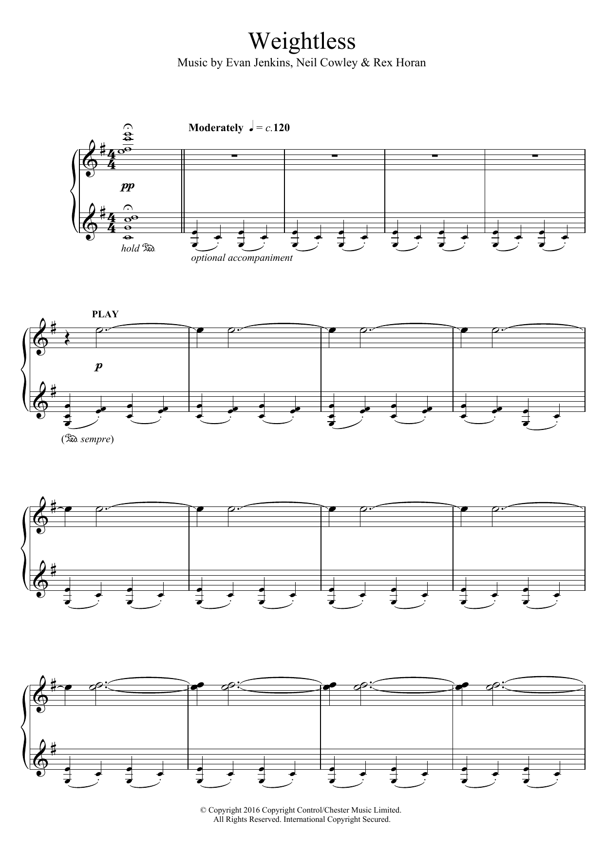 Download or print Neil Cowley Trio Weightless sheet music, chords and digital score arranged for Piano Solo. This Jazz score includes 7 page(s).