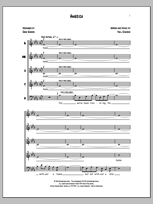 Download or print Neil Diamond America (arr. Neil Diamond) sheet music, chords and digital score arranged for SSATB Choir. This A Cappella score includes 22 page(s).