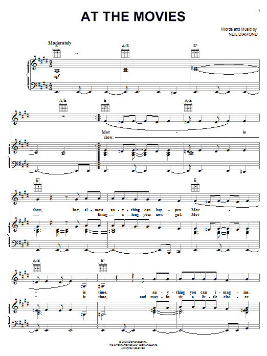 Download or print Neil Diamond At The Movies sheet music, chords and digital score arranged for Piano, Vocal & Guitar Chords (Right-Hand Melody). This Pop score includes 6 page(s).