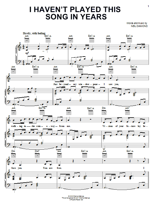 Download or print Neil Diamond I Haven't Played This Song In Years sheet music, chords and digital score arranged for Piano, Vocal & Guitar Chords (Right-Hand Melody). This Pop score includes 4 page(s).