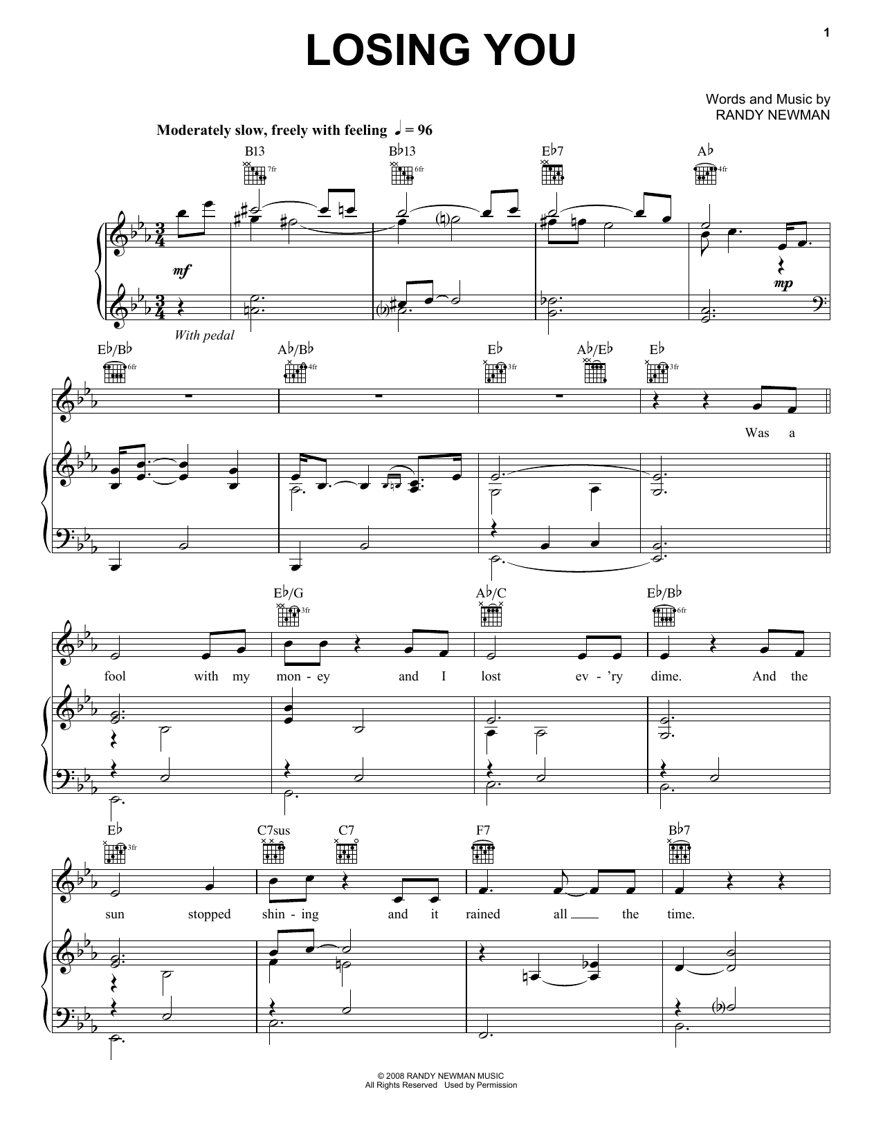 Download or print Neil Diamond Losing You sheet music, chords and digital score arranged for Piano, Vocal & Guitar Chords (Right-Hand Melody). This Pop score includes 5 page(s).