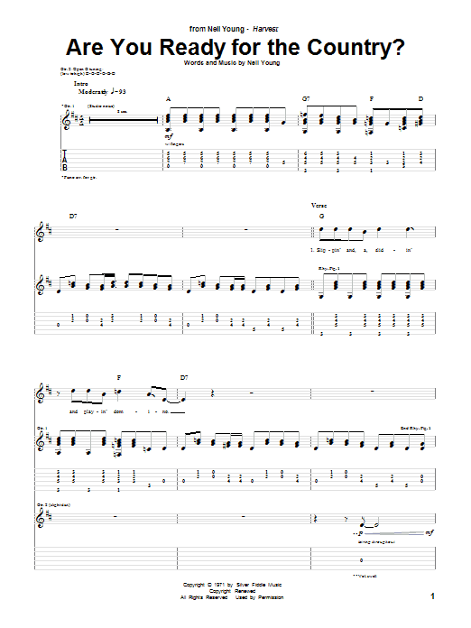 Download or print Neil Young Are You Ready For The Country sheet music, chords and digital score arranged for Guitar Tab. This Pop score includes 6 page(s).