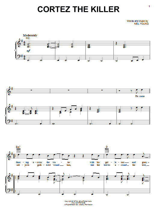 Download or print Neil Young Cortez The Killer sheet music, chords and digital score arranged for Guitar Rhythm Tab. This Pop score includes 4 page(s).