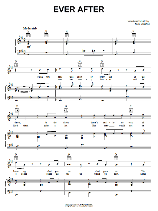 Download or print Neil Young Ever After sheet music, chords and digital score arranged for Piano, Vocal & Guitar Chords (Right-Hand Melody). This Pop score includes 4 page(s).