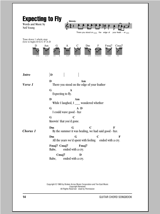 Download or print Neil Young Expecting To Fly sheet music, chords and digital score arranged for Guitar Rhythm Tab. This Pop score includes 3 page(s).