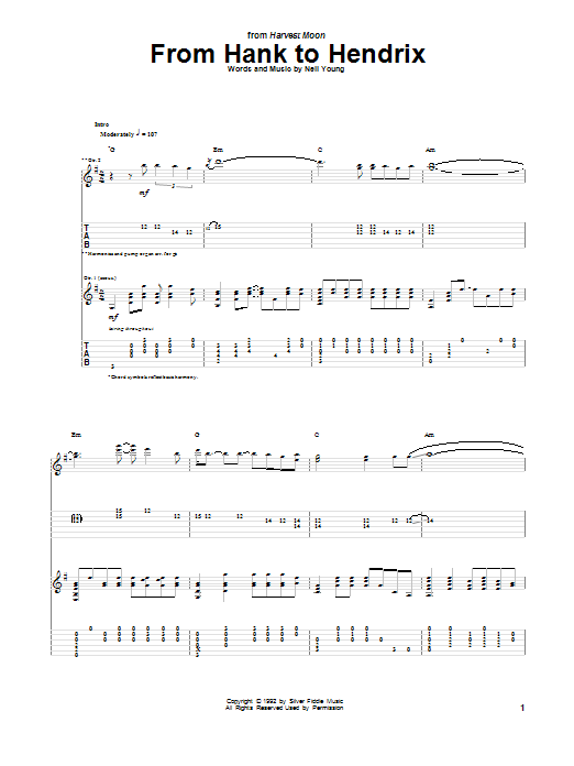 Download or print Neil Young From Hank To Hendrix sheet music, chords and digital score arranged for Guitar Tab. This Pop score includes 12 page(s).
