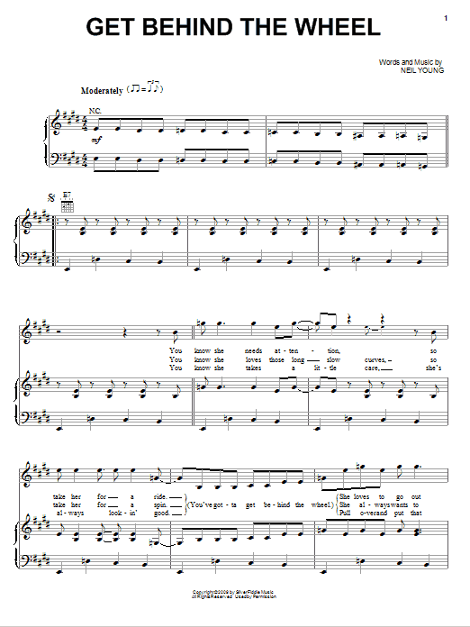 Download or print Neil Young Get Behind The Wheel sheet music, chords and digital score arranged for Piano, Vocal & Guitar Chords (Right-Hand Melody). This Pop score includes 4 page(s).