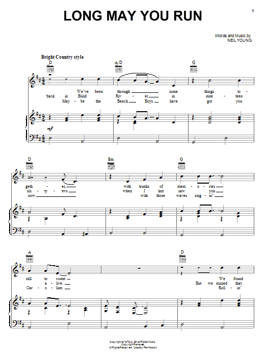 Download or print Neil Young Long May You Run sheet music, chords and digital score arranged for Guitar Chords/Lyrics. This Folk score includes 2 page(s).