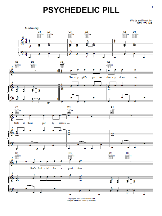 Download or print Neil Young Psychedelic Pill sheet music, chords and digital score arranged for Piano, Vocal & Guitar Chords (Right-Hand Melody). This Folk score includes 5 page(s).