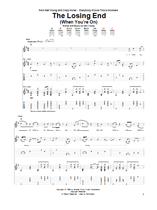 Download or print Neil Young (When You're On) The Losing End sheet music, chords and digital score arranged for Guitar Tab. This Pop score includes 13 page(s).