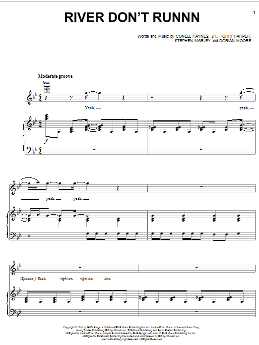 Download or print Nelly River Don't Runnn sheet music, chords and digital score arranged for Piano, Vocal & Guitar Chords (Right-Hand Melody). This Hip-Hop score includes 10 page(s).
