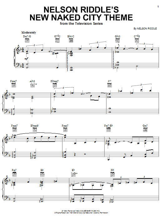 Download or print Nelson Riddle Nelson Riddle's New Naked City Theme sheet music, chords and digital score arranged for Piano Solo. This Film/TV score includes 3 page(s).