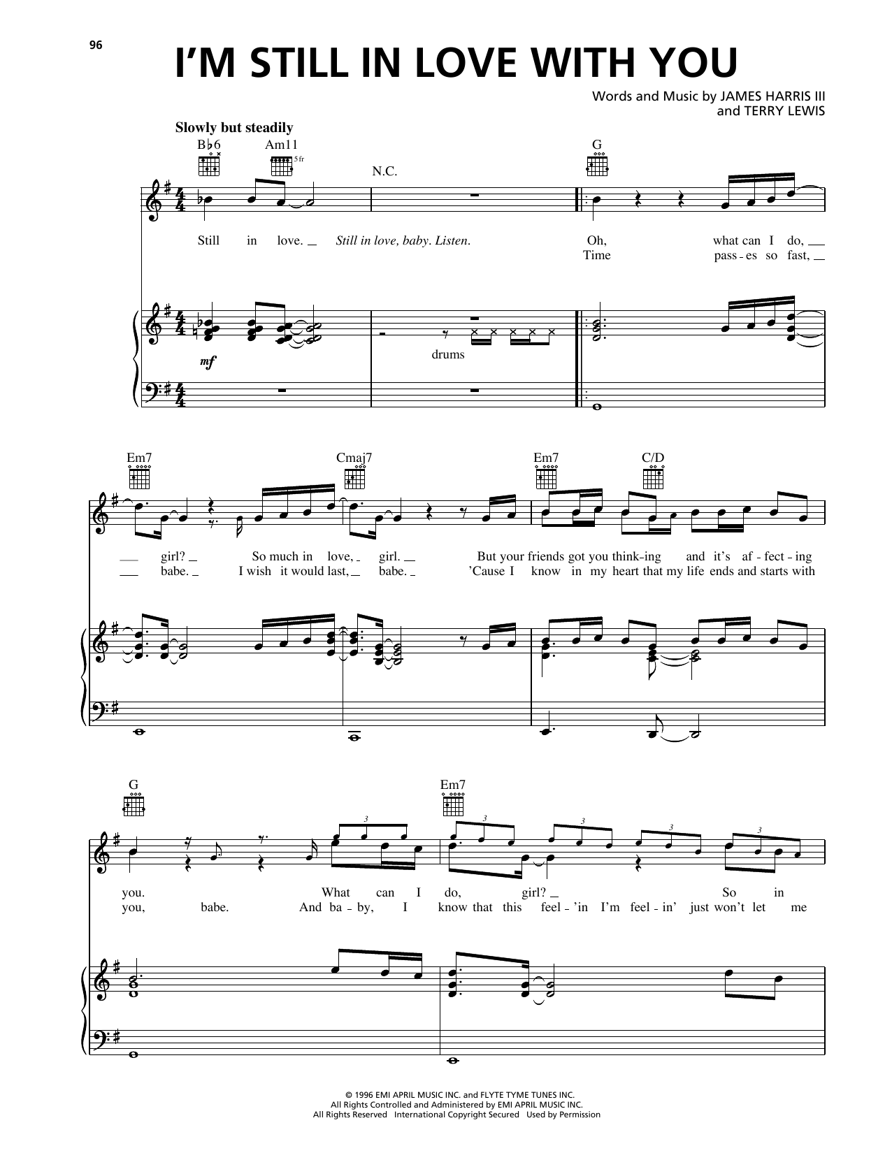 Download or print New Edition I'm Still In Love With You sheet music, chords and digital score arranged for Piano, Vocal & Guitar Chords (Right-Hand Melody). This Pop score includes 4 page(s).