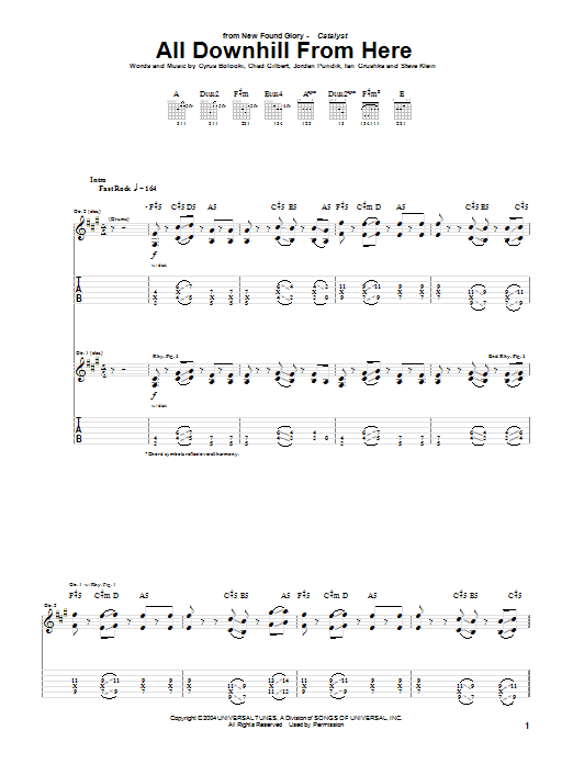 Download or print New Found Glory All Downhill From Here sheet music, chords and digital score arranged for Bass Guitar Tab. This Metal score includes 5 page(s).