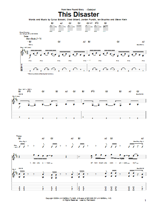 Download or print New Found Glory This Disaster sheet music, chords and digital score arranged for Guitar Tab. This Pop score includes 6 page(s).
