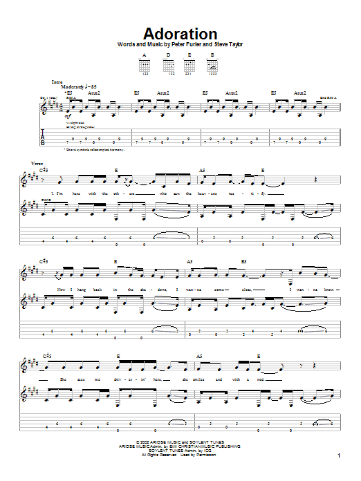Download or print Newsboys Adoration sheet music, chords and digital score arranged for Guitar Tab. This Christian score includes 10 page(s).