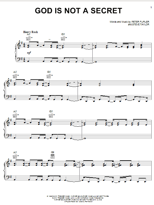 Download or print Newsboys God Is Not A Secret sheet music, chords and digital score arranged for Piano, Vocal & Guitar Chords (Right-Hand Melody). This Christian score includes 7 page(s).