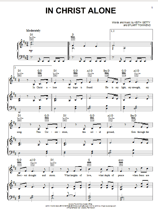 Download or print Keith & Kristyn Getty In Christ Alone sheet music, chords and digital score arranged for Solo Guitar. This Christian score includes 2 page(s).