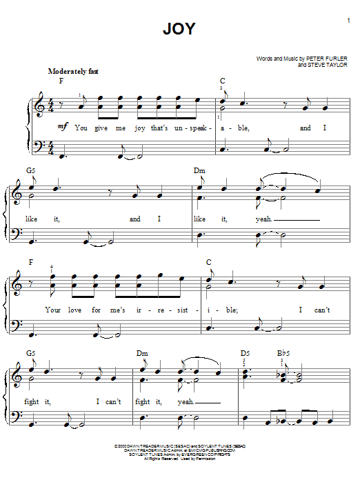 Download or print Newsboys Joy sheet music, chords and digital score arranged for Easy Piano. This Pop score includes 6 page(s).