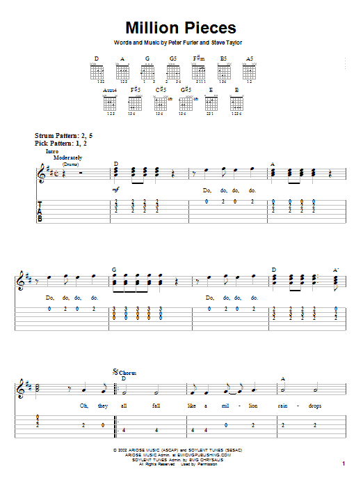 Download or print Newsboys Million Pieces sheet music, chords and digital score arranged for Easy Guitar Tab. This Christian score includes 5 page(s).