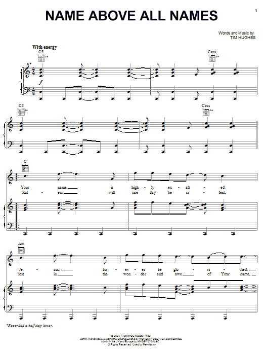 Download or print Newsboys Name Above All Names sheet music, chords and digital score arranged for Piano, Vocal & Guitar Chords (Right-Hand Melody). This Christian score includes 6 page(s).