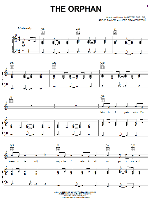 Download or print Newsboys The Orphan sheet music, chords and digital score arranged for Piano, Vocal & Guitar Chords (Right-Hand Melody). This Christian score includes 9 page(s).