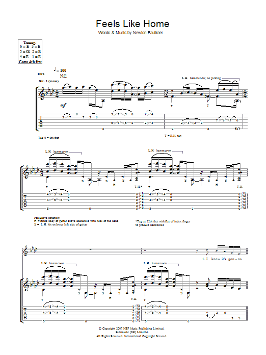 Download or print Newton Faulkner Feels Like Home sheet music, chords and digital score arranged for Guitar Tab. This Pop score includes 7 page(s).
