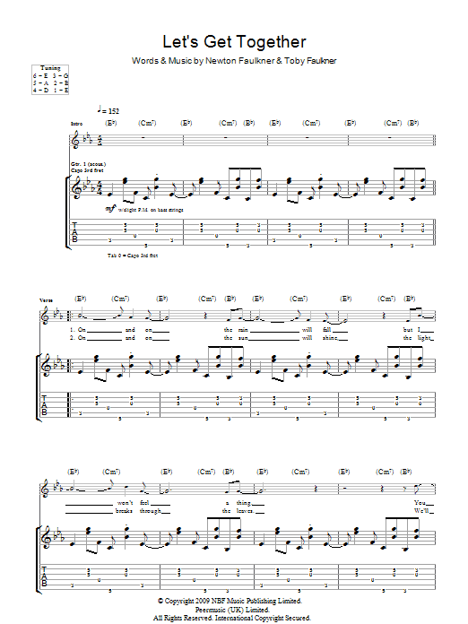 Download or print Newton Faulkner Let's Get Together sheet music, chords and digital score arranged for Guitar Tab. This Rock score includes 4 page(s).