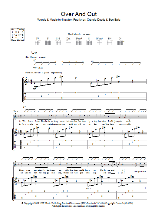 Download or print Newton Faulkner Over And Out sheet music, chords and digital score arranged for Guitar Tab. This Rock score includes 5 page(s).