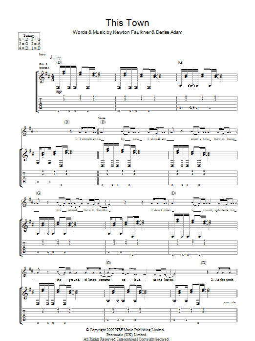 Download or print Newton Faulkner This Town sheet music, chords and digital score arranged for Guitar Tab. This Rock score includes 5 page(s).