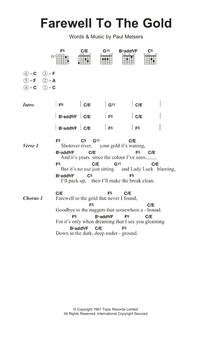 Download or print Nic Jones Farewell To The Gold sheet music, chords and digital score arranged for Guitar Chords/Lyrics. This Pop score includes 3 page(s).