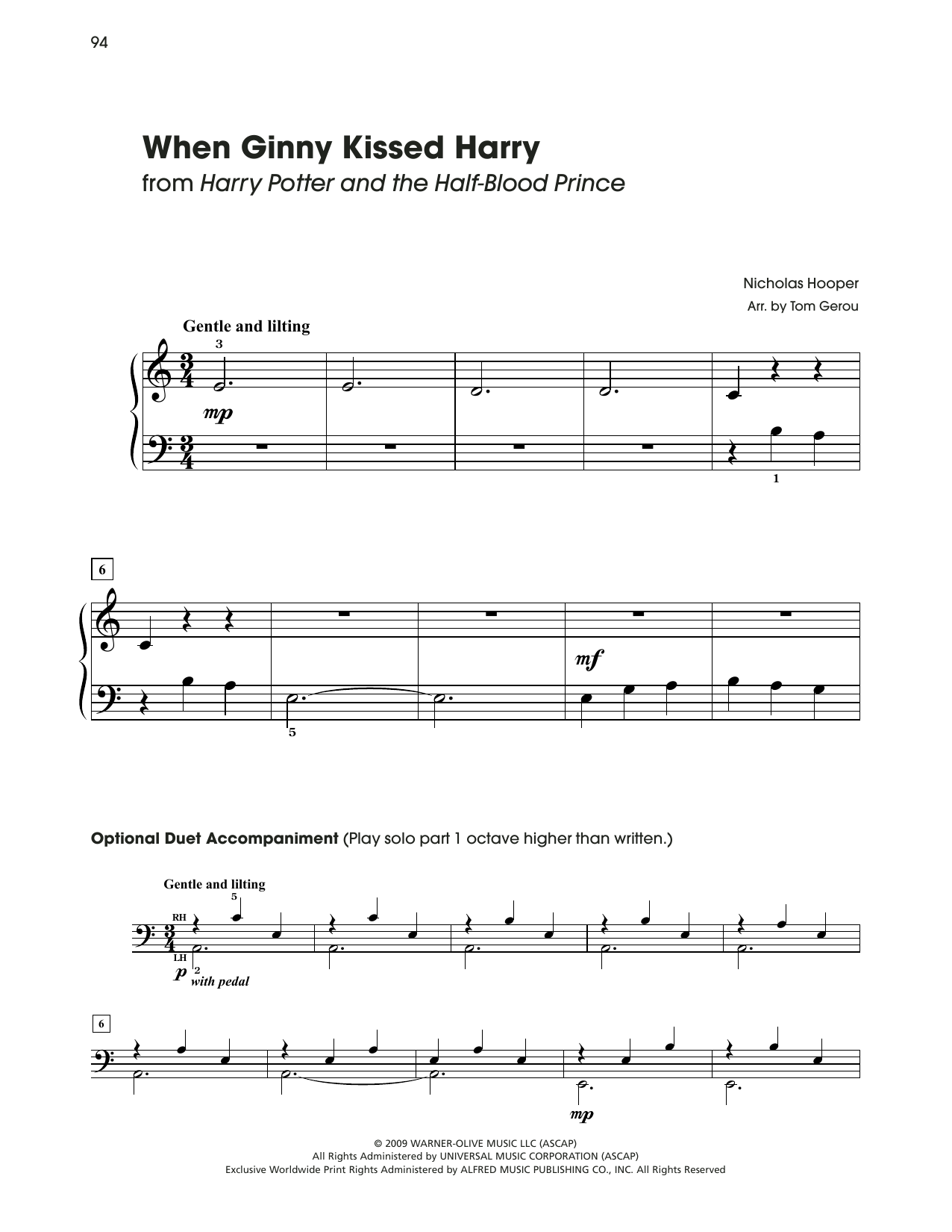 Download or print Nicholas Hooper When Ginny Kissed Harry (from Harry Potter) (arr. Tom Gerou) sheet music, chords and digital score arranged for 5-Finger Piano. This Film/TV score includes 4 page(s).