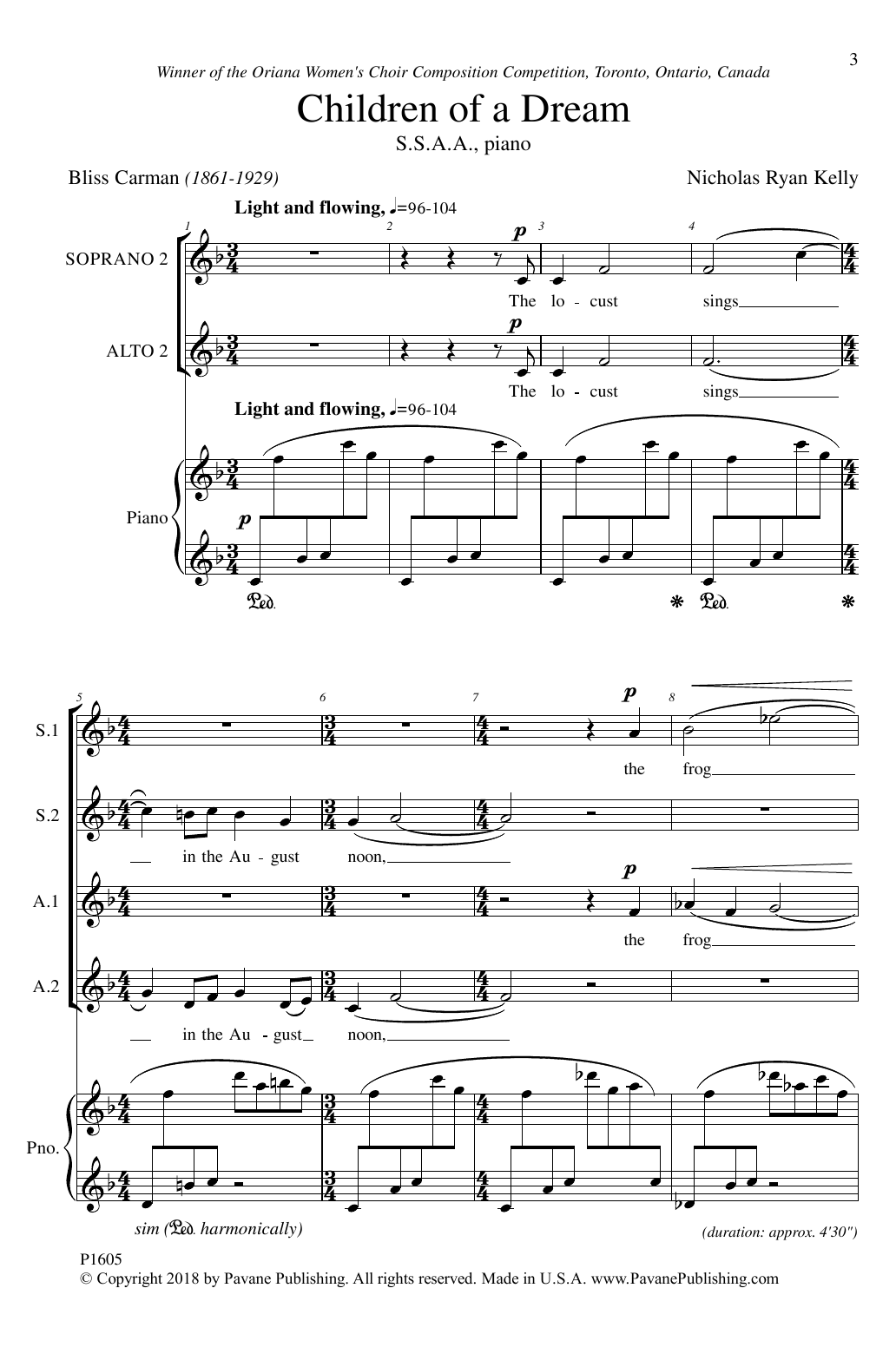 Download or print Nicholas Kelly Children Of A Dream sheet music, chords and digital score arranged for SSA Choir. This Concert score includes 15 page(s).