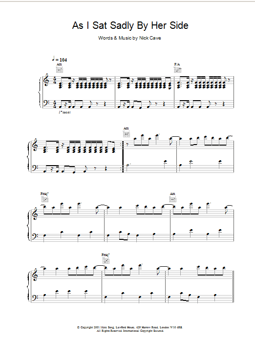Download or print Nick Cave As I Sat Sadly By Her Side sheet music, chords and digital score arranged for Guitar Chords/Lyrics. This Pop score includes 3 page(s).