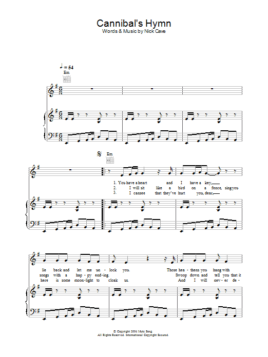 Download or print Nick Cave Cannibal's Hymn sheet music, chords and digital score arranged for Guitar Chords/Lyrics. This Rock score includes 2 page(s).