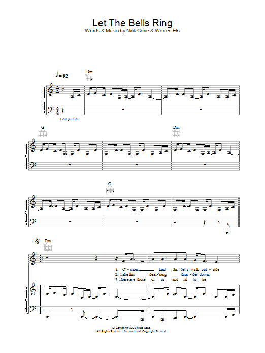 Download or print Nick Cave Let The Bells Ring sheet music, chords and digital score arranged for Guitar Chords/Lyrics. This Pop score includes 3 page(s).